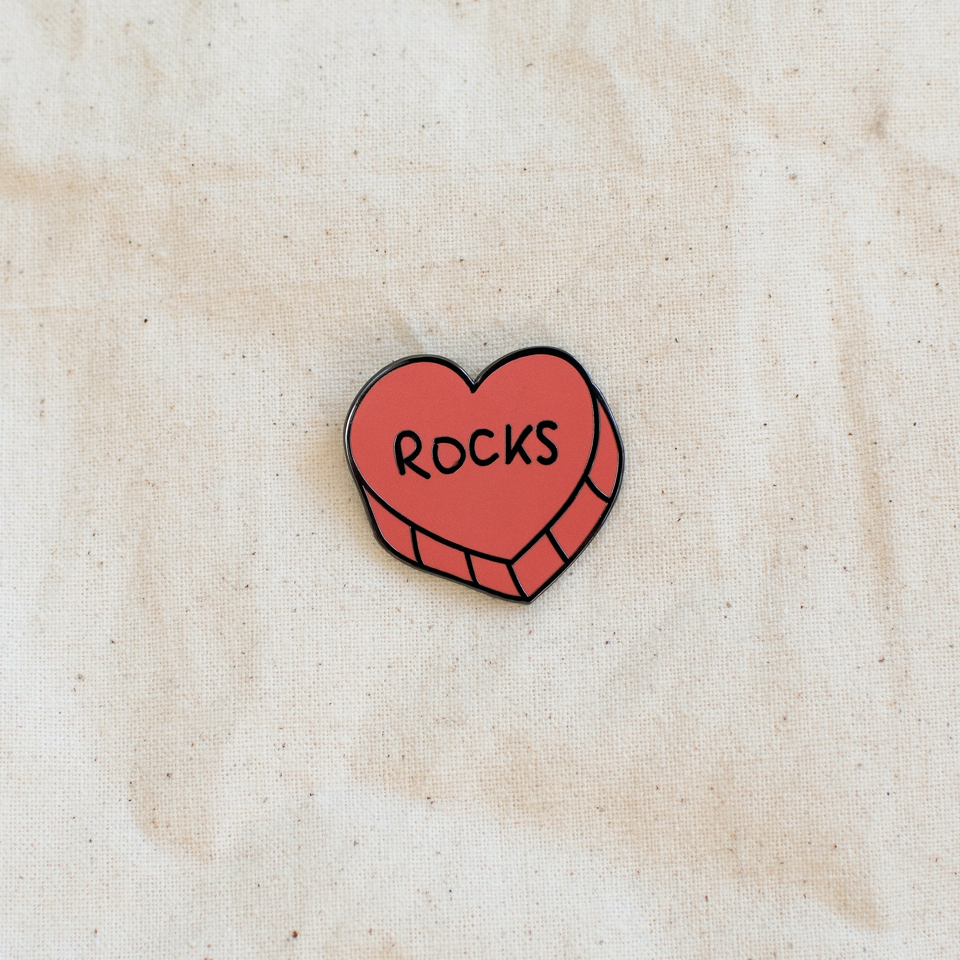 The perfect pin for your chalk bag or bucket to remind everyone how much you love rock.